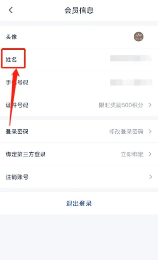 进入会员信息,点击【姓名】。