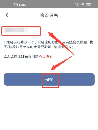 进入修改姓名,输入姓名,点击【保存】。