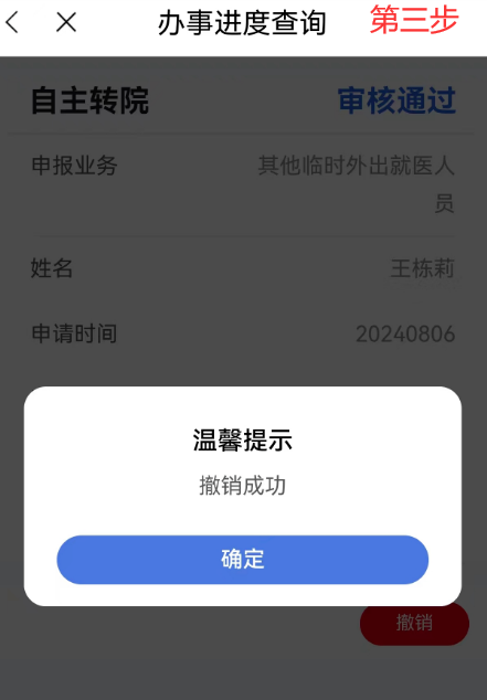 异地就医备案成功后,点击首页【我要查】-【办事进度查询】模块,在【办事进度查询】中选择已审核通过的需要撤销的备案信息,点击【撤销】,弹出撤销成功即可。