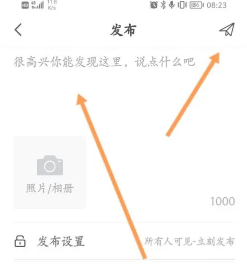 第三步,我们最后输入动态内容,点击发布图标即可。