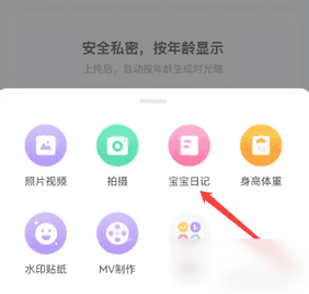 打开安卓版妈妈网孕育的记照片菜单,点击宝宝日记即可。