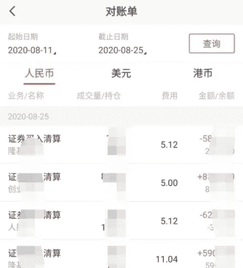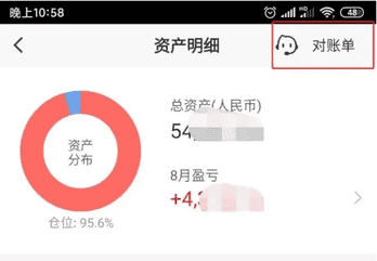 然后就可以查看自己的月度盈亏,并可以在左上角进入对账单,查看自己的资金操作明细