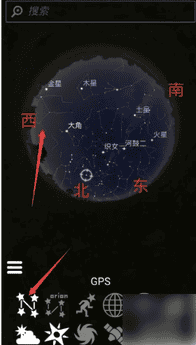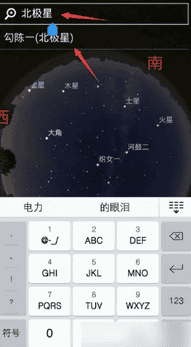 点击菜单栏后,上方弹出搜索栏,比如我们想看北极星就输入文字,输入文字自动弹出搜索结果并点击。