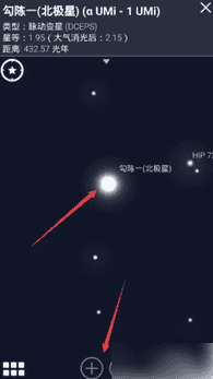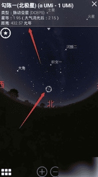 点击后自动在地球上显示北极星位置,并列出详细信息。
