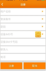 3、如果是新用户注册,填入用户信息,imei号和sim卡号要填正确。IMEI号在包装盒上,扫一下即可;