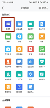 1、首先我们打开软件,点击右上角的四个大小不一的方块的功能选项,进入应用大全,这里我们就可以看到工资条了。