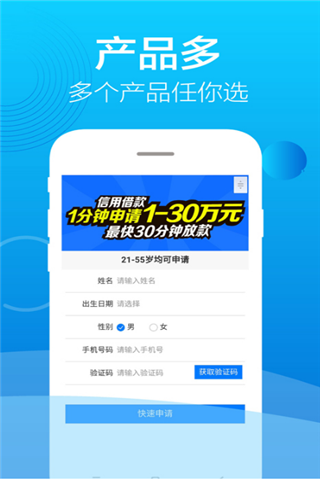 3.多种贷款产品,直接申请。还款期限自由选择。