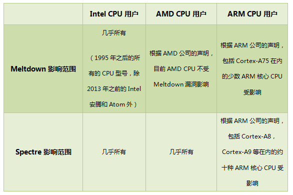 附:CPU漏洞具体影响范围