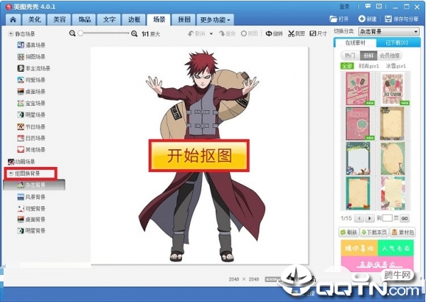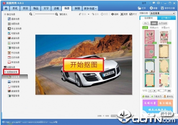②点击美图秀秀左边的“抠图换背景”,点击开始抠图;