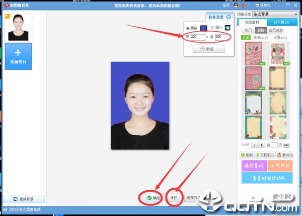 7、选择好背景之后,可以选择适当的证件照尺寸,下图选择了蓝色背景图,点击确定或者保存即可