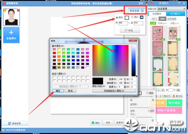 6、右击右上角的背景设置,选择证件照需要的背景颜色,点击确即可