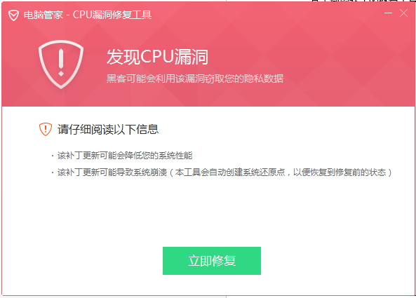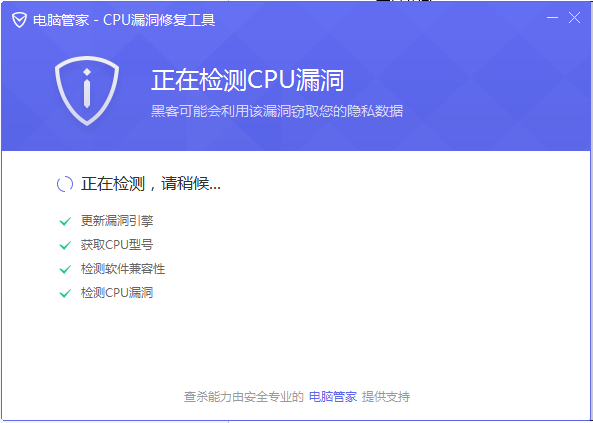 电脑管家cpu漏洞修复工具,是腾讯安全团队,特意为cpu两种漏洞制作的安全修复工具,可以有效的帮助大家低于病毒对电脑中cpu的侵害。0