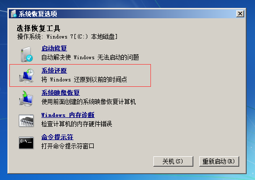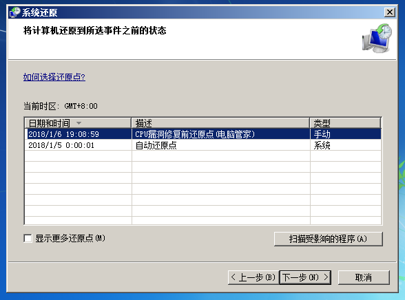 选择还原点开始还原: