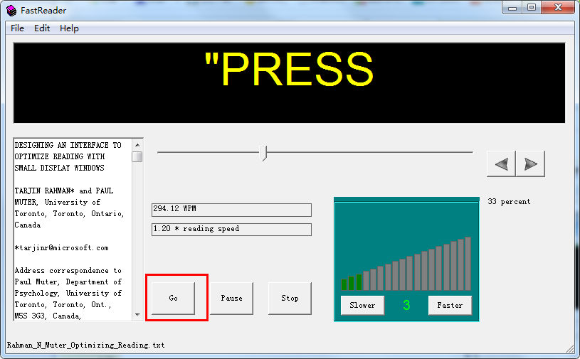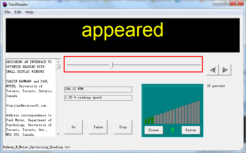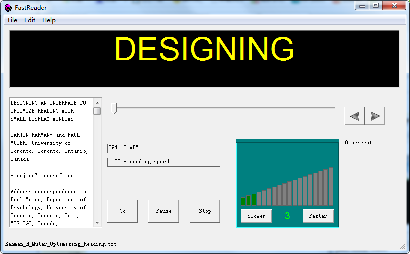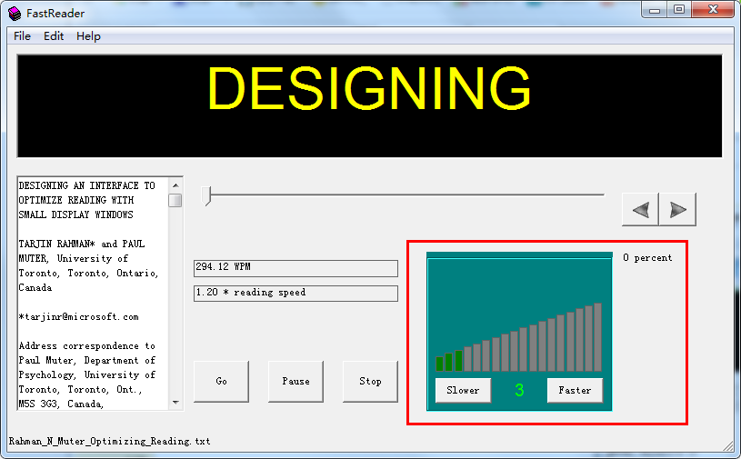 只需打开一个文件或通过剪贴板过去,然后单击开始。 读者可以通过单击慢速和快速来调整流文本的速度