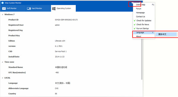 中文设置方法软件安装后默认为英文诉话可以点击右上角“问号"点击language==简体中文来设置软件主界面语言。