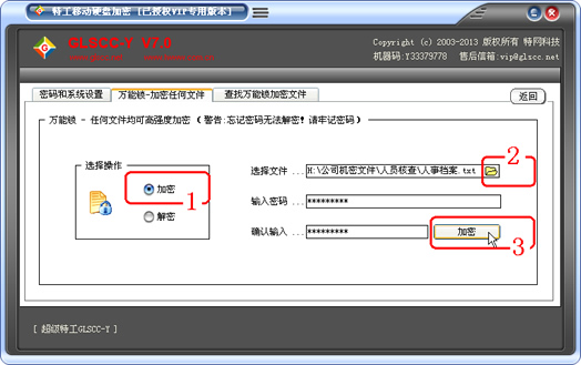 每个人的电脑中或多或少都有不想让别人看到的“机密文件”,上网电脑随时会有被入侵隐私被盗发生“XX门”危险(杀毒软件只能防范已知病毒,无法防范黑客和木马盗取资料),为了保护自己的隐私,非常有必要给这些“机密文件/机密文件夹”上把锁。也许您觉得没什么机密文件没必要!?您可知道:黑客如果盗走信用卡号就意味损失金钱,如果盗走你的资料比如手机号、信箱、通讯录、文件等,就可以用这些去做坏事或者去祸害您的家人、朋友、同事、单位等,这样的案例数不胜数,除非您的电脑上什么都没有!所以每个人都有必要保护好自己的资料安全。