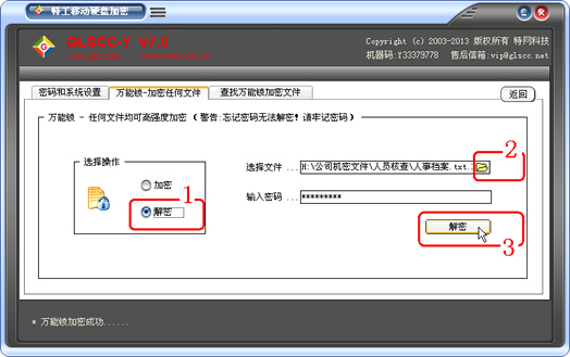 优点:特工移动硬盘加密(GLSCC-Y)不但可以快速加密移动硬盘文件和移动硬盘文件夹,而且所有移动硬盘加密的文件和文件夹由软件集中管理,只设一个软件启动密码即可实现移动硬盘文件和移动硬盘文件夹加密,用户无需费劲记住很多密码,人性化智能化的设计使您操作起来得心应手。