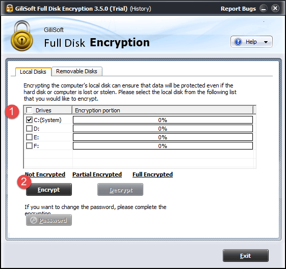 应用程序有一个用户友好的界面,不需要持续的关注。没有额外的技能都需要使用这个软件。GiliSoft全磁盘加密不删除您的驱动器时,加密可以保证你的电脑安全,隐私和不良访问完整的数据保护。