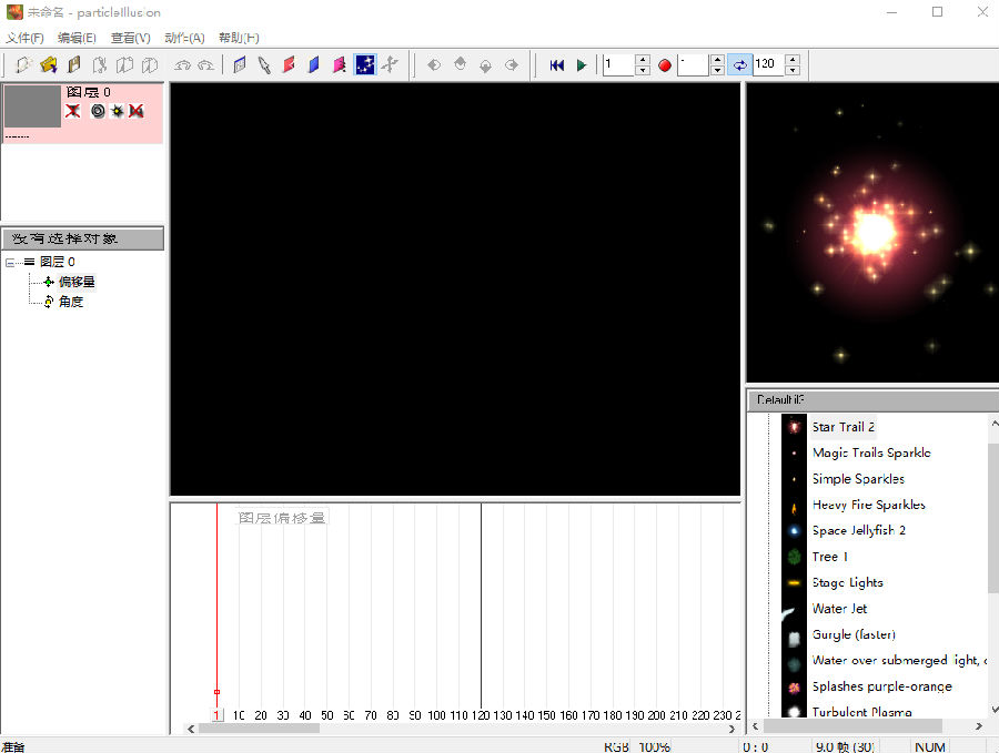 粒子预览窗口:在粒子库中选择粒子后这里就将出现该粒子对应的动画。鼠标在这里点击可以定位预览的位置等。