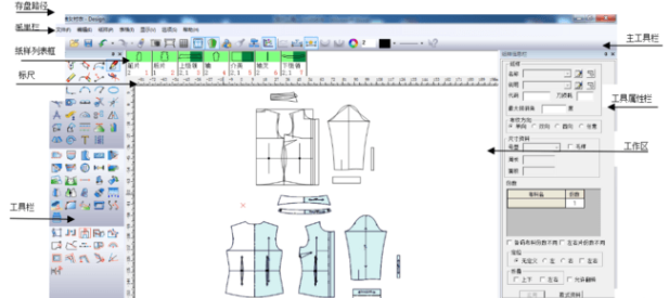 2、开样放码部分保留原有的服装 CAD 功能,可以加省、转省、加褶等等,提供丰富的缝份类型、工艺标识,可自定义各种线型,允许用户建立部件库,例如领子、袖口等部位,使用时直接载入。