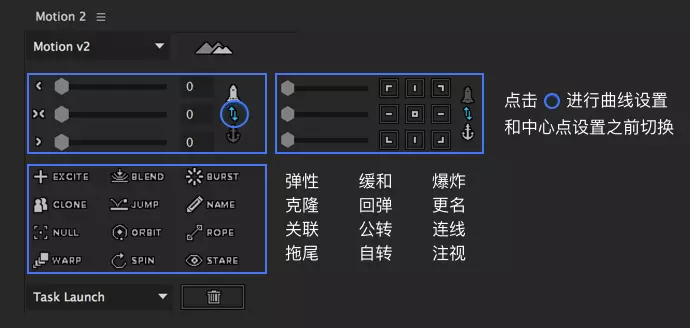 设定一个图层为另外一个图层的中心点,可调整距离、移动、速度、方向等参数。