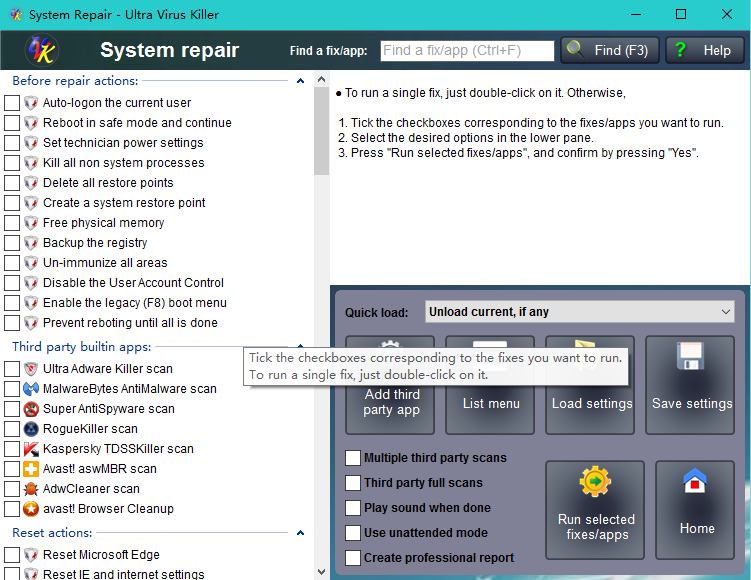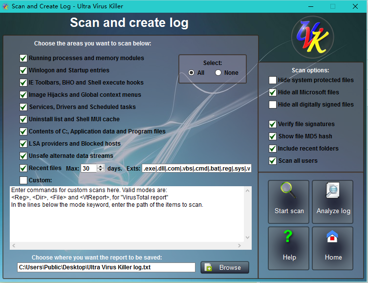 Ultra Virus Killer官方版是一款专业强大的病毒清除和系统修复软件。Ultra Virus Killer官方版能够帮助用户检测到所有类型的恶意软件以及间谍软件,同时还可删除受感染的系统,大量实用的修复工具,为你的系统安全做保障。