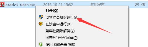 1、解压后,以管理员身份运行“acadvlx-clean.exe”程序