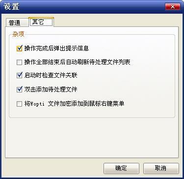点击“确定”,保存“设置-其它”的设置;点击“取消”,不保存当前设置,返回Wopti文件加密程序。