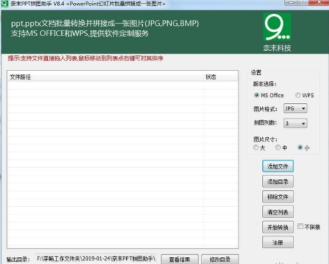 奈末PPT拼图助手是一款强大的ppt转图片软件,通过它用户可以快速将ppt文件转换为一张或多张图片,允许输出保存为jpg、bmp等多张图片格式,支持批量转换,非常实用。