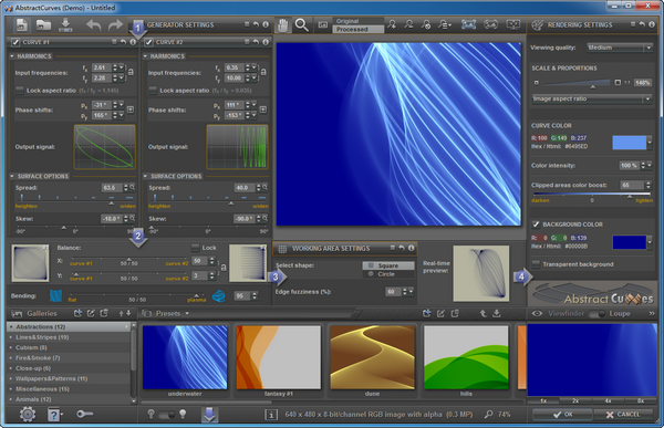 AbstractCurves(曲线图制作软件)这是一款专业制图软件,内涵30+调色上万+颜色,有非常专业的操作面板,能够让你的想象得到充分的发挥,让你的作品更上一层楼。