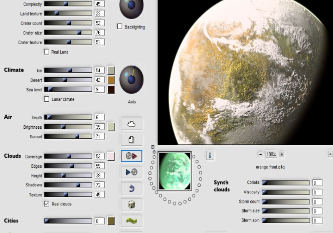 将其视为“相同但不同”的按钮。它重新组织用于构建地球的随机数集。当你点击它时,你的行星设计大致保持不变,但是陆地,陨石坑,城市和风暴的具体位置会发生变化。