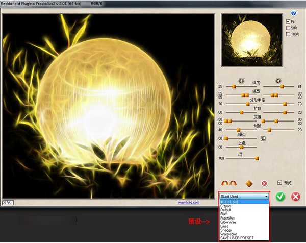 Redfield Fractalius是一款处理制作艺术图像的插件。其功能强大,样式繁多不愧为一款优秀的滤镜工具; 可产生多种的纹理效果、马赛克效果、凡高画、点画法、彩色铅笔、碳笔画、黑白照片等效果。