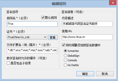 支持多个主流时间戳地址;支持时间戳自主选择功能;支持签名描述和URL;支持双签名,并自主选择不同哈希算法的证书;