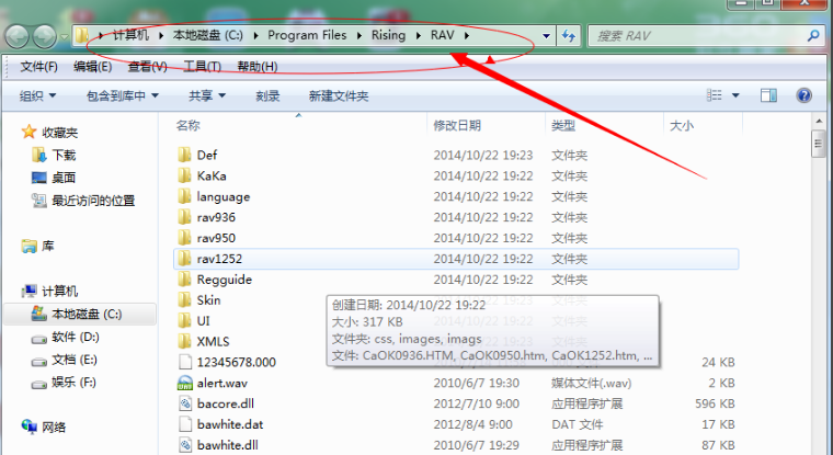 6、点击Rising,会出现瑞星杀毒的安装文件夹RAV.