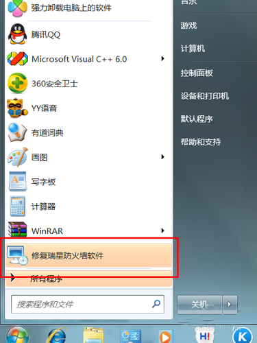 2.点击开始菜单,找到修复瑞星个人防火墙这个软件的功能选项。