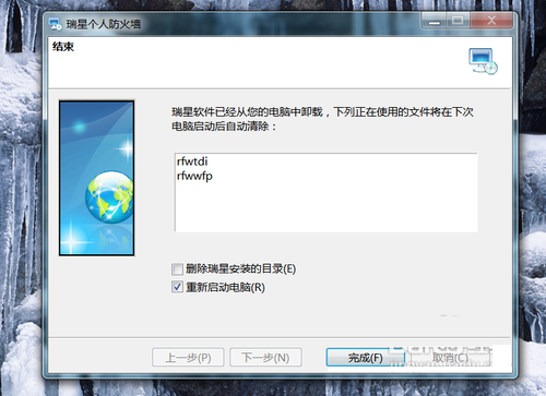 5.瑞星个人防火墙软件已成功卸载,建议大家一定要注意重新启动计算机,这样就可以保证软件的残余信息被彻底删除!其实推荐大家使用360安全卫士中的软件强力卸载模式!有兴趣的同学不妨试试。