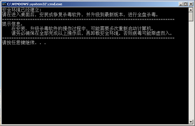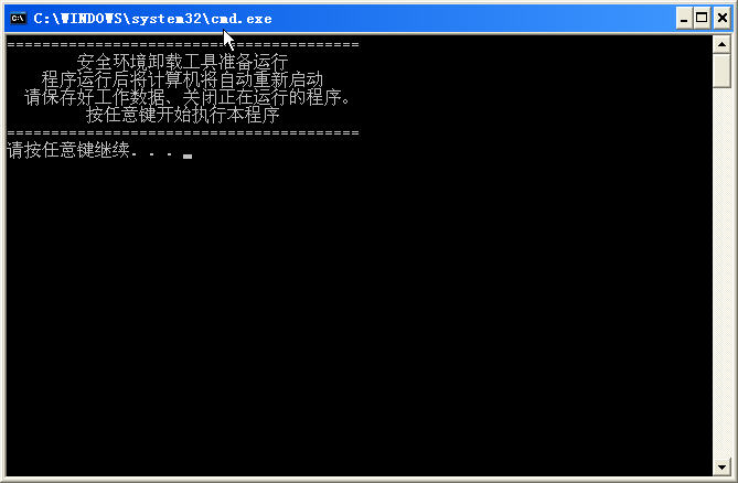 二.杀毒结束后如无问题,请务必卸载安全环境,可以双击“卸载安全环境工具.bat”,会弹出如图提示: