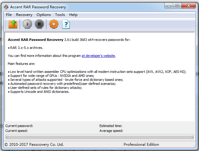 Accent RAR Password Recovery,或称archpr是一个非常非常非常专业的winrar密码破解软件,它可以解密rar压缩包,速度极其快,解rar密码不再是苦等时间难于上青天的事了。欢迎感兴趣的朋友下载。