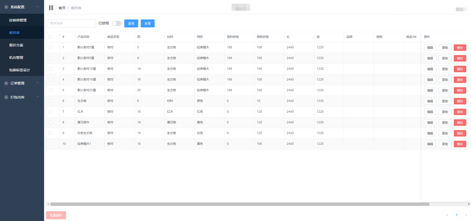 板材、商品、二次加工、报价方案、客户、订单、报价、用户反馈;