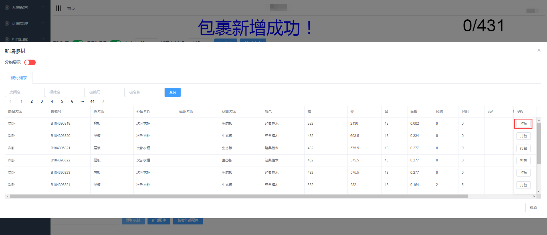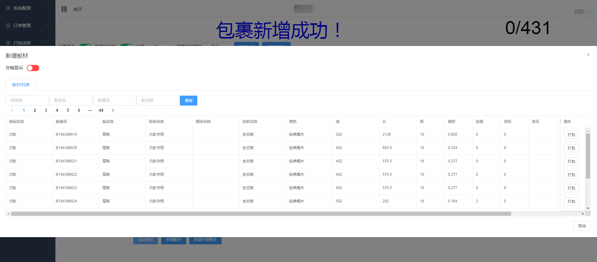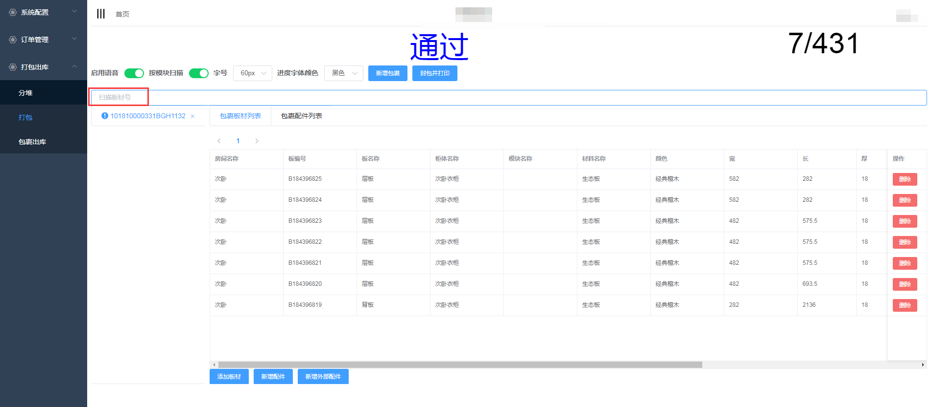 登录晨丰家具生产软件,可直接对该订单进行开料,具体操作查看文档:生产软件