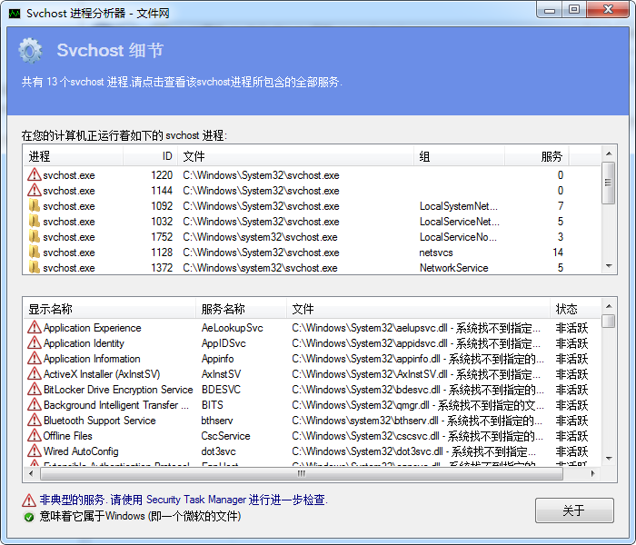 Windows\System32, 但是很多病毒和木马也利用这个文件和进程名来进行伪装. Svchost进程分析器 可以列举出所有的svchost的实例,并检查它们包