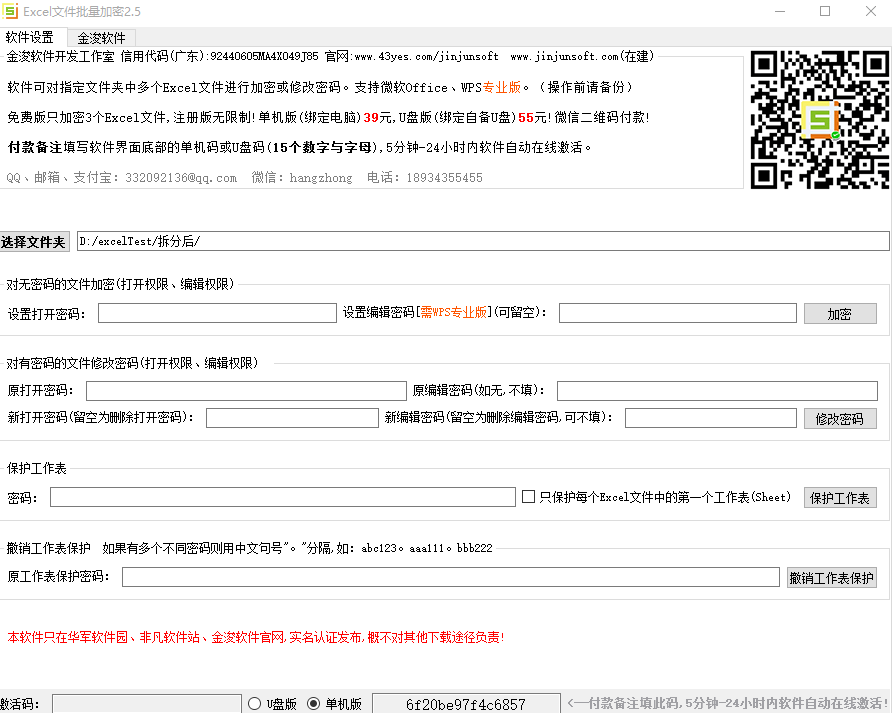 excel文件批量加密,可对指定文件夹中的excel多个工作簿文件批量进行加密和修改密码。