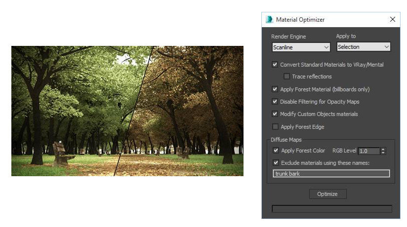 Forest Pack是完全多线程的,并针对速度和效率进行了高度优化。一个典型的场景可以毫不费力地使用超过100.000个对象,每个有100万个多边形,并在几分钟内渲染。