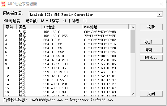1、ARP地址表编辑器提供简单的地址查看功能