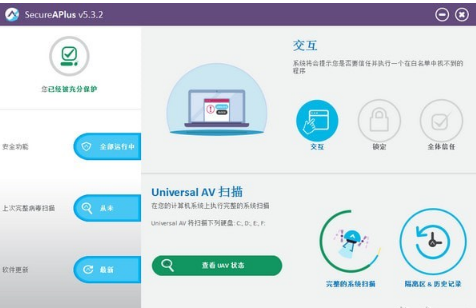 SecureAPlus是一款系统安全防护工具,可以帮助用户检测电脑的病毒及时进行处理,具有云查杀功能,对电脑进行全面的检测,扫描速度快,查杀彻底,还支持应用白名单,以免被误处理,并且其云端数据实时更新最新的病毒库,功能十分强大,欢迎下载。