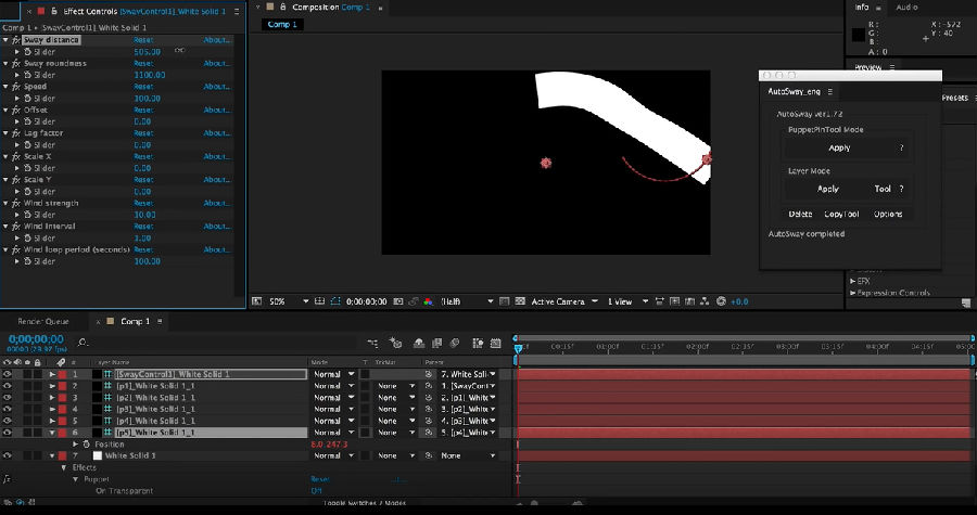 AutoSway是一款AE的效果脚本,能够让用户需要处理的内容按照已经设定好的效果进行改动,其风吹效果完全符合重力效应,浑然天成,毫无半点违和感,有需要的朋友可以下载体验!