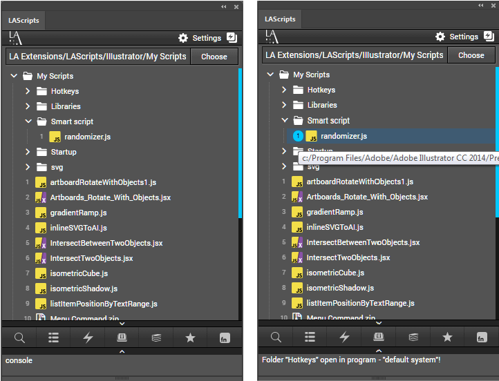 但由于LAScripts是Illustrator, Photoshop, InDesign 都通用的插件面板,故建议在添加文件夹时加注程序名(例如“Photoshop脚本”、“Illustrator脚本”这样),防止自己搞混淆。