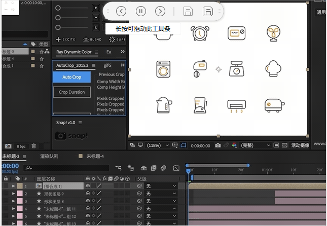 “ Auto Crop ”允许您立即裁剪合成内容的大小。 在当前帧处裁剪合成或分析整个合成的内容和裁剪,而不会切断任何动画。 Auto Crop 3现在甚至允许你裁剪当前的合成而不需要预合成。 在最新版本中,Auto Crop已经从头开始重建为本机插件,以提供新功能和更好的结果。能够根据合成透明信息剪裁成适合的大小。