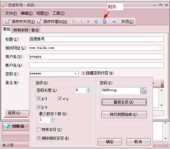 添加完成后,右键单击这条记录,就可以把您的用户名或密码复制到剪贴板,也可以直接访问您记录的网址。