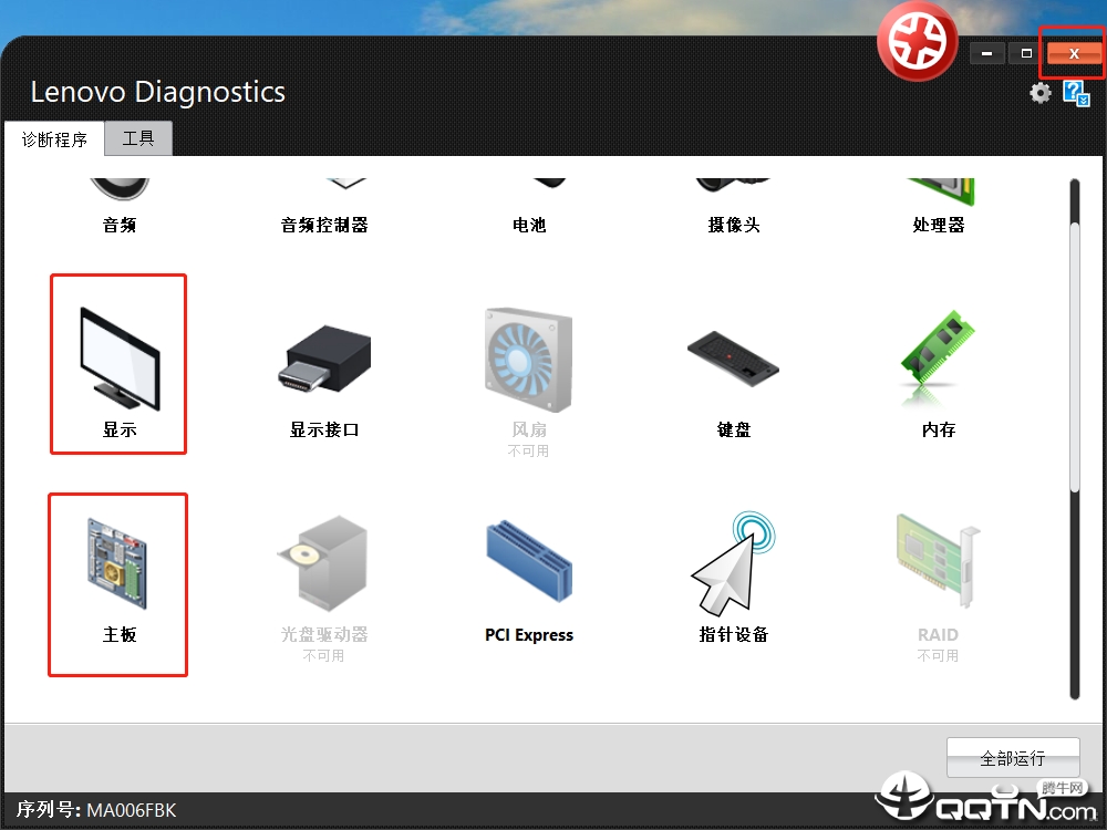 如果您想单独测试某个硬件,可以选择主页上的某个设备进行测试,如果您想退出软件,点击右上角的红X即可。如图16: